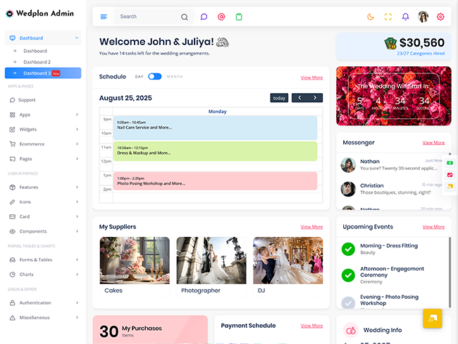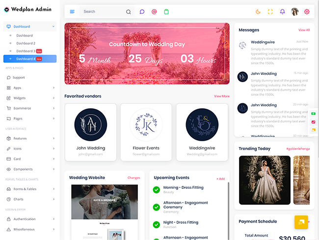 Wedplan Admin is one of the unique modern admin dashboard template.